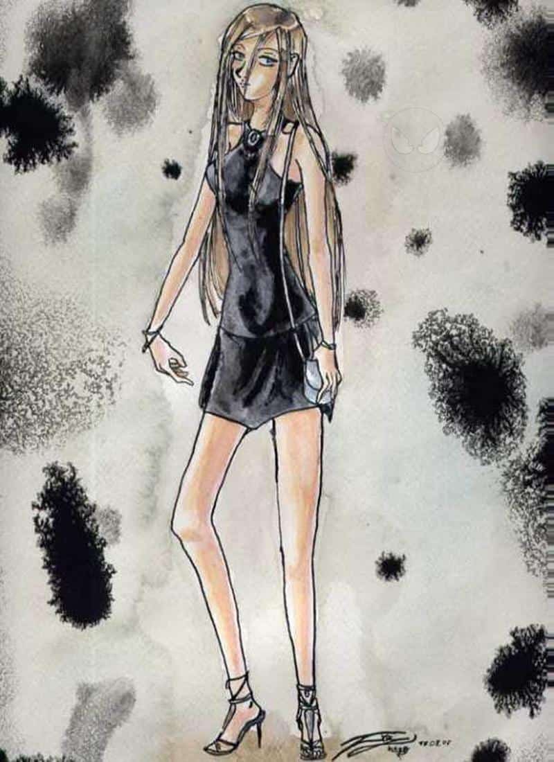so was mich wirklich stört sind ihre beine(grrr!)(auch mit ihren händen wusste ich nichts anzufangen) vorallem ihr (von ihr aus) rechtes bein, ist total durchgebogen, was durch den schnitt des rockes noch verstärkt wird. tja..auch finde ich ist bei der schattierungs arbeit zu vieles untergegangen(das kleid ist dunkelblau und nicht schwarz, die haut ist auf der einen seite gelblich auf der anderen lila..tja..) grrr! der hg hat mir aber viiel spaß gemacht,..sehr simpel aber das war toll der tusche beim zerfließen zu zugucken^.^