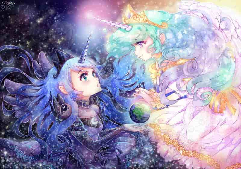 Princess Luna und Princess Celestia aus My Little Pony, vermenschtlicht und als "Universum" dargestellt