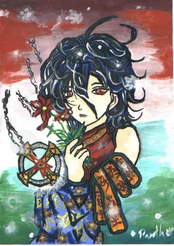 sooo is mein erstes acryl bild und das erste mal das ich auf leinwand gezeichnet hab. fürs erste bin ich zu frieden. allerdings hab ich noch nicht alles so raus, woran ich mnich auch versuchen werde besser zu werden. die phose habich von BAA hab halt blos die haare und augen verändert und die zeichen drauf gemalt. des drumherunm hab ich halt noch dazu gmeacht und die kette hab ich von meiner abgezeichnet