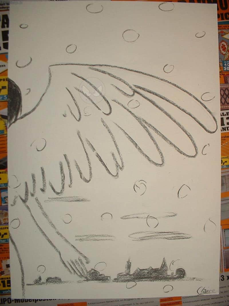 Tja mein erster Versuch. T_T Ich konnte es leider nicht einscannen, da es Format A3 hat, deshalb musste ich es Mit meiner Digitalcamera fotographieren.
