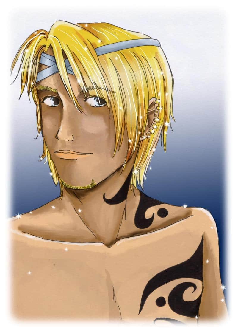 Ansonsten..na ja, habe bei dem Typen auch die Augen etwas anders gezeichnet, als wie ich sie sonst male. Eben etwas weicher und so...wollt halt mal was andres ausprobieren. ^^"