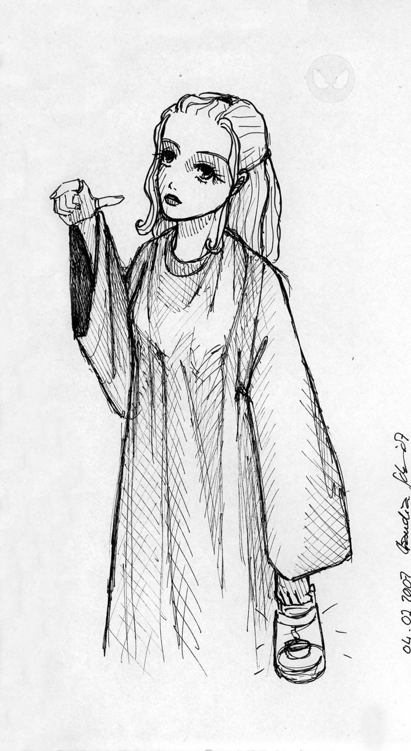 Ja...eine weitere Skizze. Hofe sie gefällt jemanden. Anzumäkeln wäre eben hier nur die hand...die ist irgendwie net so geworden.