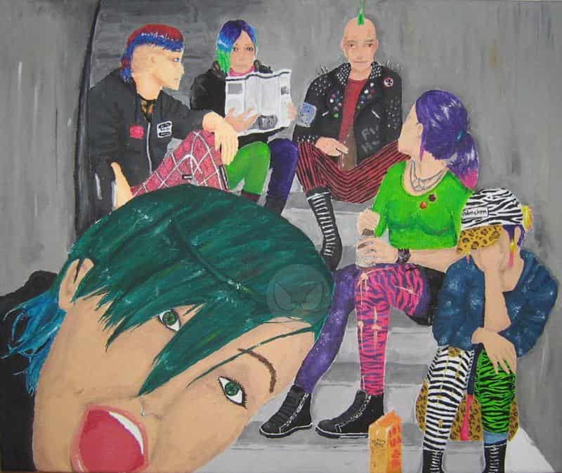 mussten ma in diff (deutsch/kunst unterricht bei uns anna schule) nen bild auf leinwand zum thema streßenszene maln^^ war sau viel arbeit aber bin stolz drauf :)