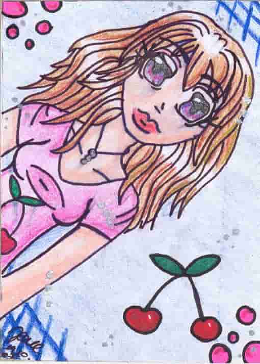 Die beiden Kirschen ( Hinu und T-Shirt ) sind mit Glitzer-Stiften coloriert *toll find* *___*