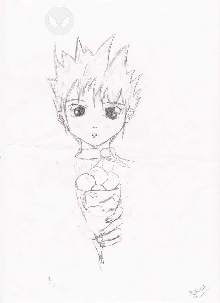 Ähm ... das bild eines kleinen Jungen mit einem Eis in der Hand ...