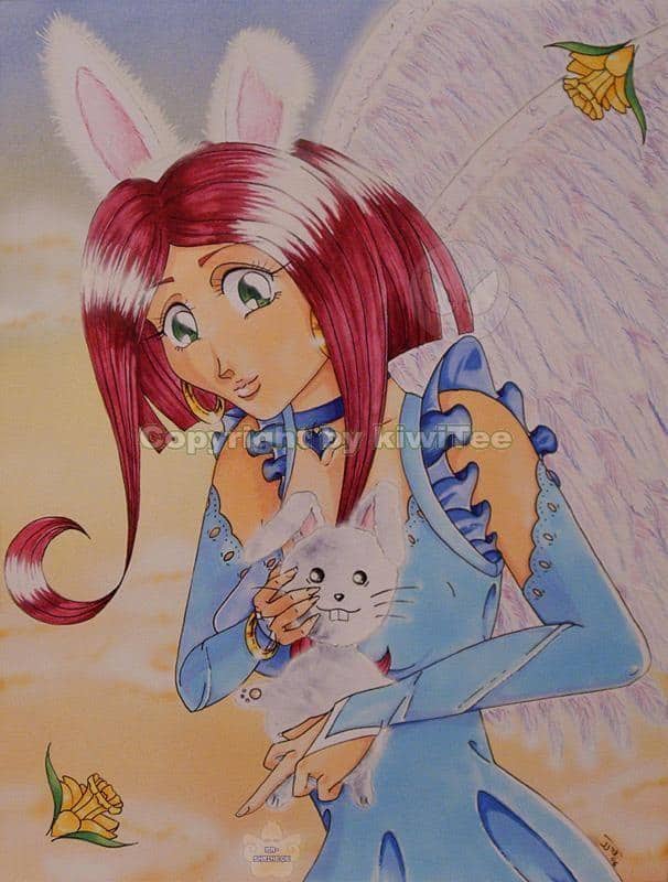 Noch einmal mein ehemaliges Maskottchen, diesmal mit kleinem Stoffhasen, ich dachte, dass das Häschen und auch die Hasenohren gut zu Ostern passen würden ^^