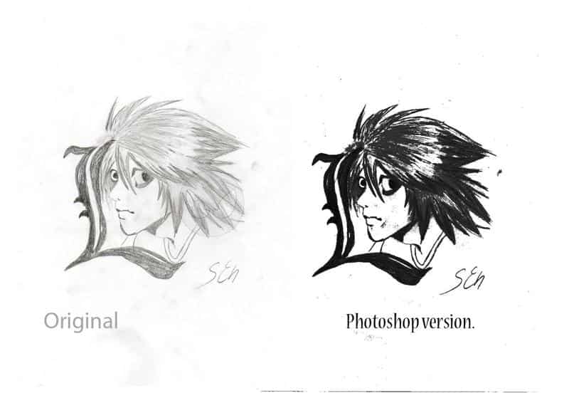 Das Bild ist abgezeichnet. Ich hab nenn screenshot aus dem Anime genommen. Fragt mich bitte nicht welche Folge das war. Is schon nenn bisschen was her (einer meiner ersten Zeichnungen überhaupt). Ich zeig euch absichtlich die Bleistiftzeichnung und die Photoshop version. Nicht das wer auf die Idee kommt das ich mit Tinte gemalt hätte.