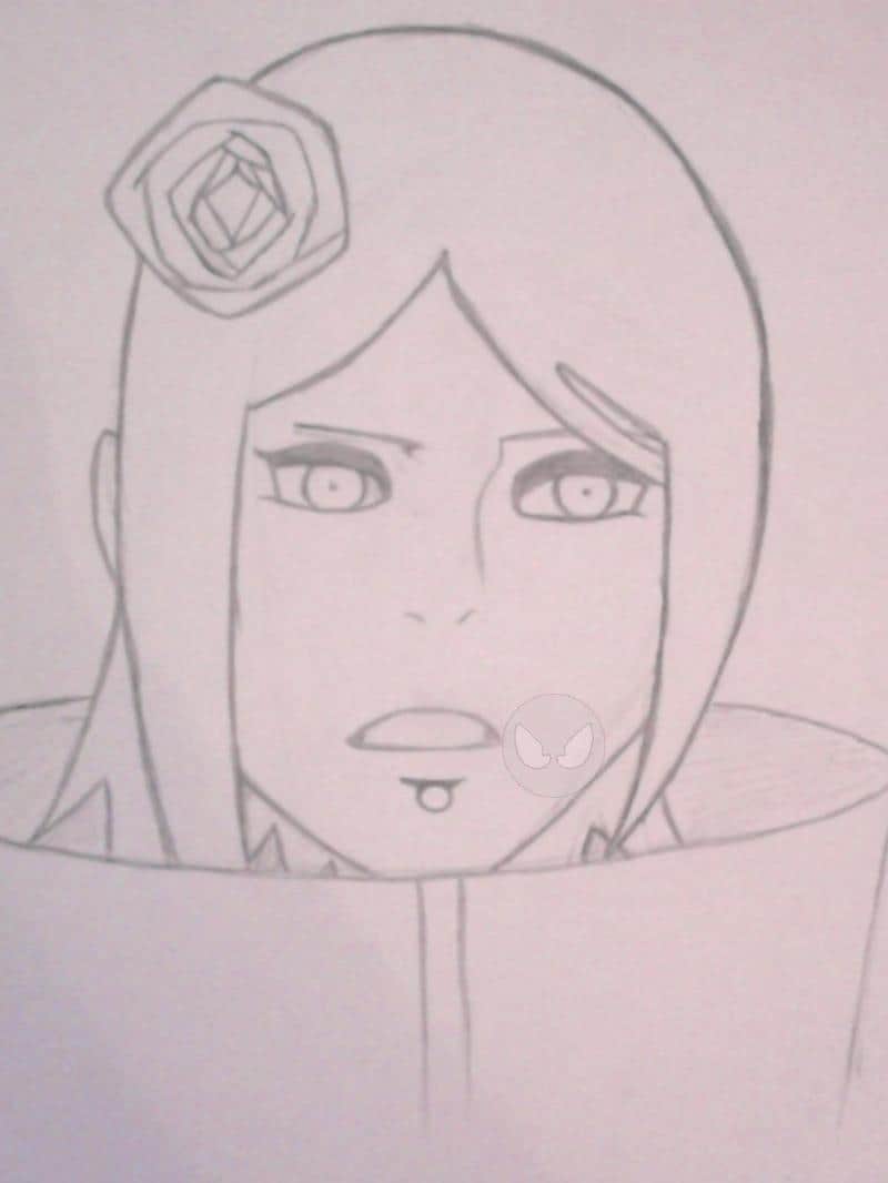 hier eine zeichnung von Konan (eine der drei waisenkinder die jiraiya unterrichtet hat die anderen waren yahiko und nagato der später als pain bekannt ist )