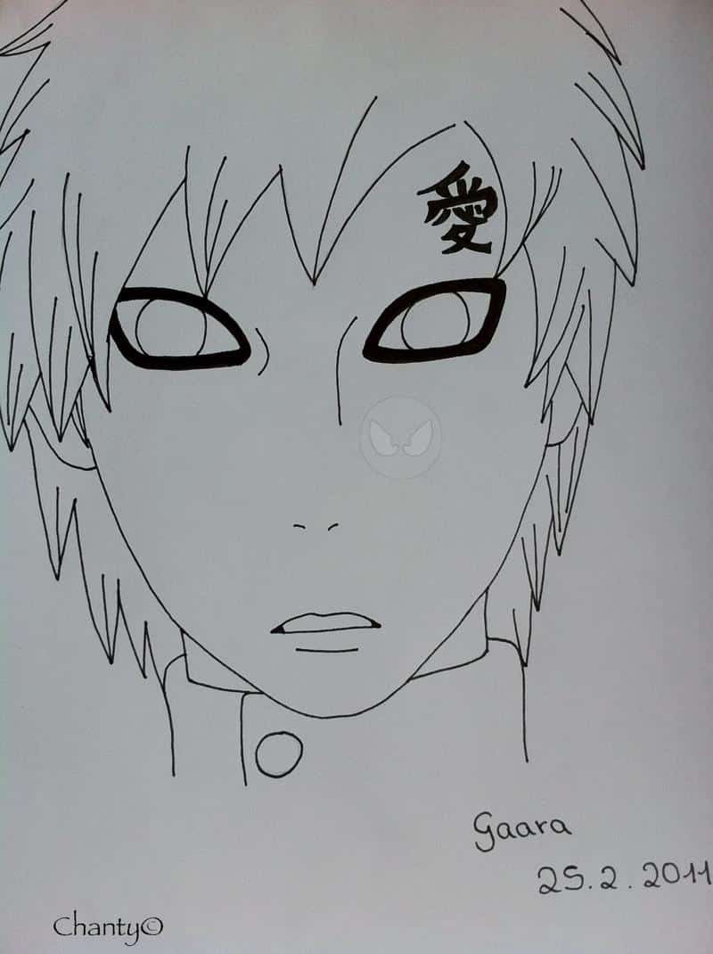 gaara-erst mit bleistift gezeichnet und dann mit fineliner umrandet