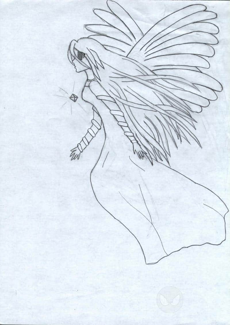 So das ist jetzt nur die allererste Skizze von dem Engel. Man beachte den leeren Ausdruck in den Augen *g*. Ich bin noch dabei ihn zu colorieren falle es was werden sollte...
