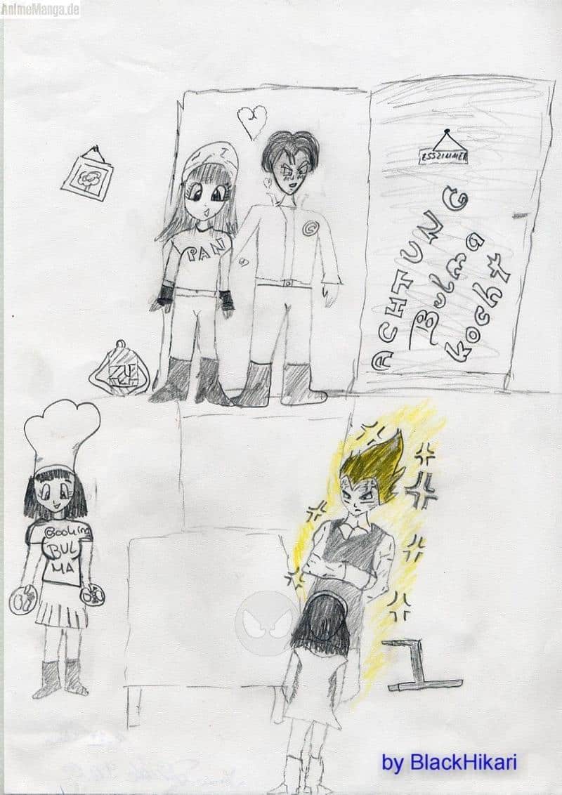 Bra fordert Geld von Veggie weil sie sich etwas kaufen will. Und Bulma kocht wieder einen Fraß zusammen :D