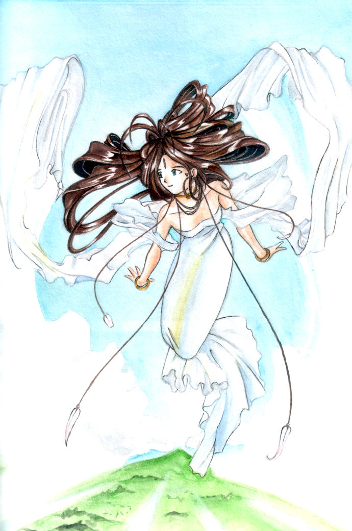 Belldandy. wer kennt sie nicht? (wird sofort erschlagen ^^) ja, abgemalt. nein, nicht abgepauscht. :) nur die farben hat mein scanner bisschen versaut. naja, macht nichts. :)