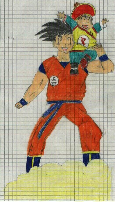 Son Goku mit Son Gohan auf der Schulter. BITTE KOMMENTAR ABGEBEN !!!