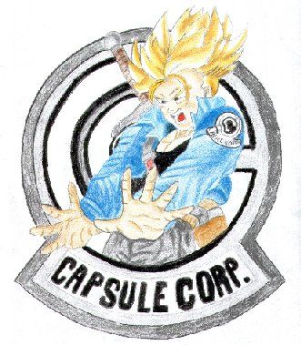 Ein Capsule Corp.-Logo mit einem Trunks.