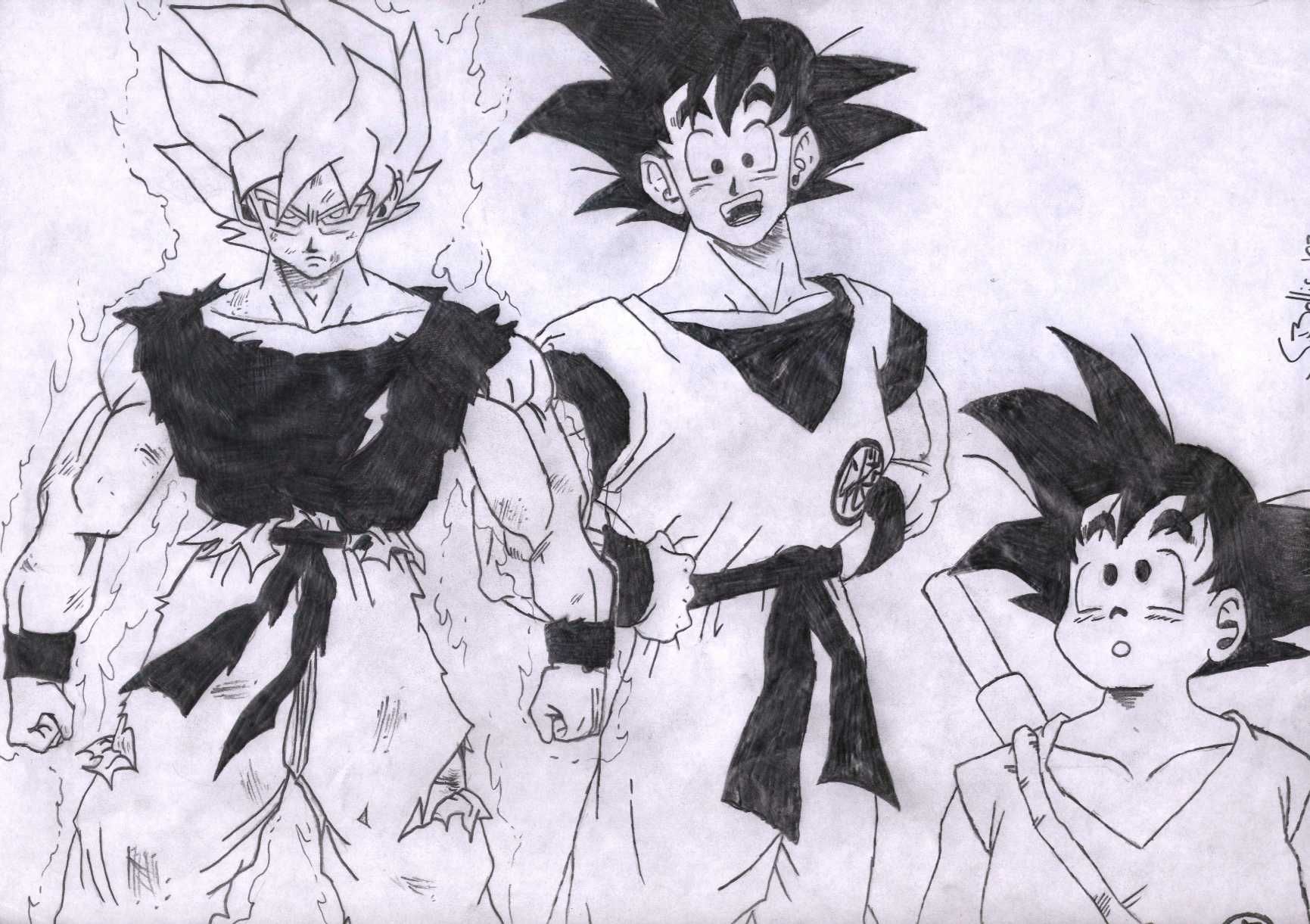 Son Goku klein, groß und SSJ