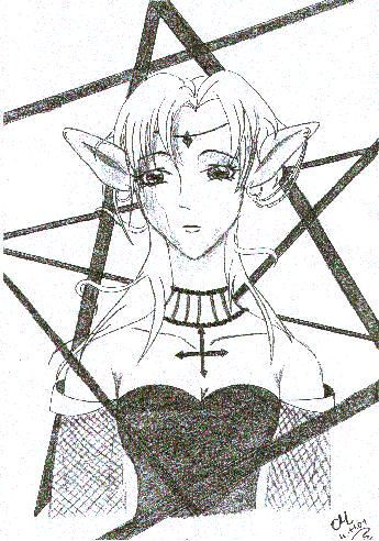 Hi das Bild ist auch von meiner Freundin Corinna. Es stellt wieder einen selbsterfundenen Charakter dar und ist aus dem Kopf gezeichnet. Die Elfe hat sich in einem Nezt verfangen und schaut deshalb etwas traurig, als ob sie fragen würde "Warum ist das gerade mir passiert".