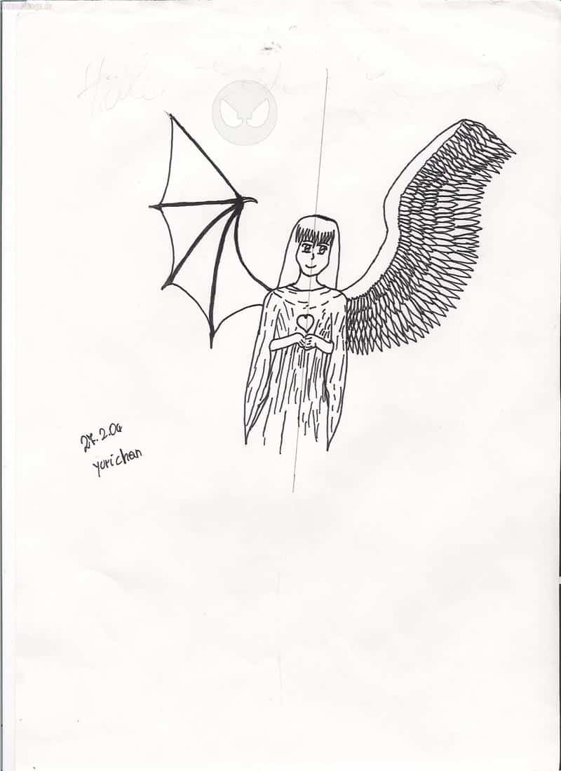 hab mal meine eigene version einer Yugi-Oh! karte gezeichnet. mir hat die frisur nicht gefallen, aber die fluegel hab ich nich richtig hingekriegt, oder?