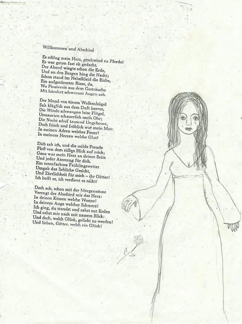 Ich habe dieses Bild mal zu einem Gedicht gezeichnet, das wir mal in der Schule gekriegt haben, ich glaube, das ist von Goethe, es steht ja daneben. Naja, das mirt dem Händezeichnen muss ich wohl noch üben jedenfalls... Ich hoffe es gefällt euch, obwohl es kein Manga ist.