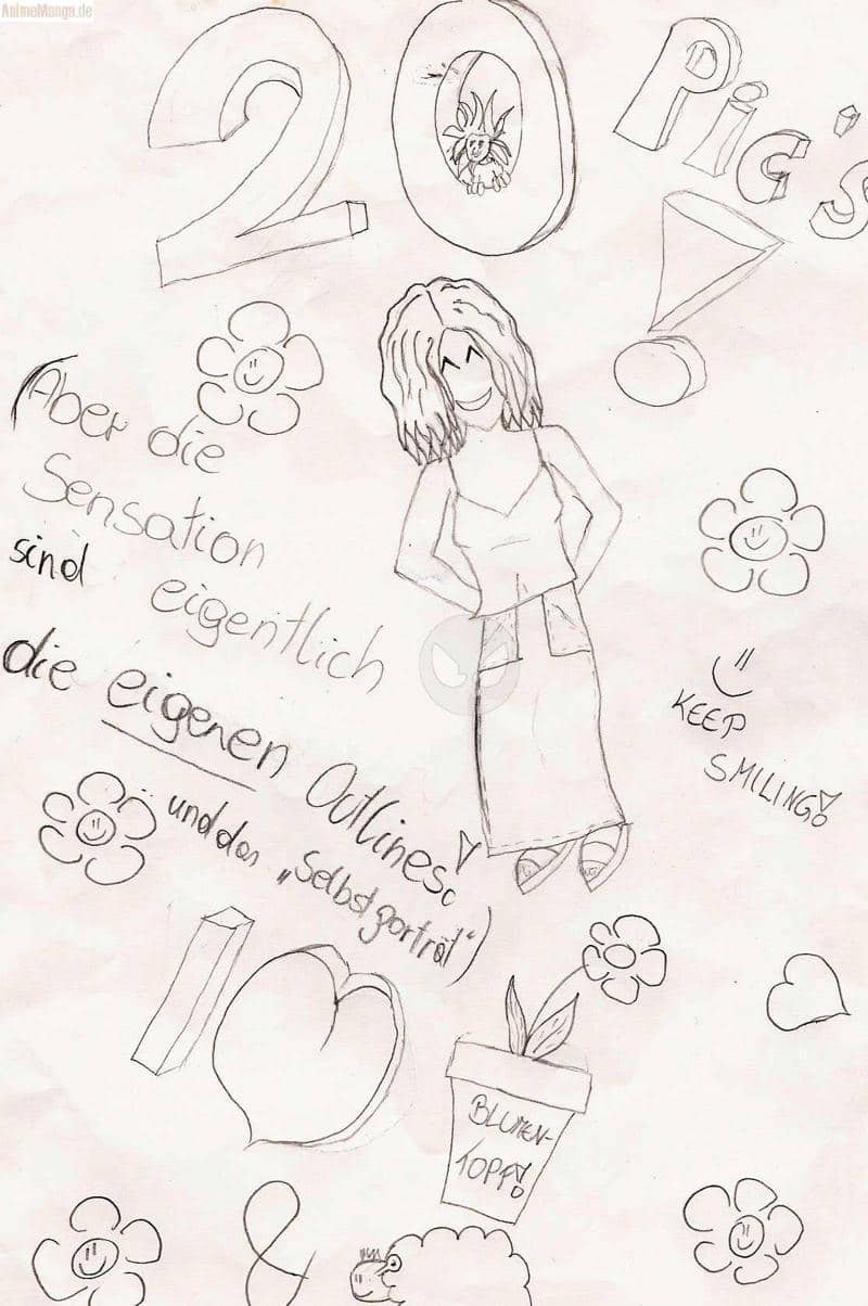 naja, es is so, ich weiss, 20 pic's sin nich viel (andere ham ja so um die 400,......) aber ich wollte einfach mal auch eienen auf jubilaeum machen...........ausserdem hab ich versucht mich selbst (wenigstens ein bisschen). naja. is ok. nur dass ich keine locken zeichnen kann.......