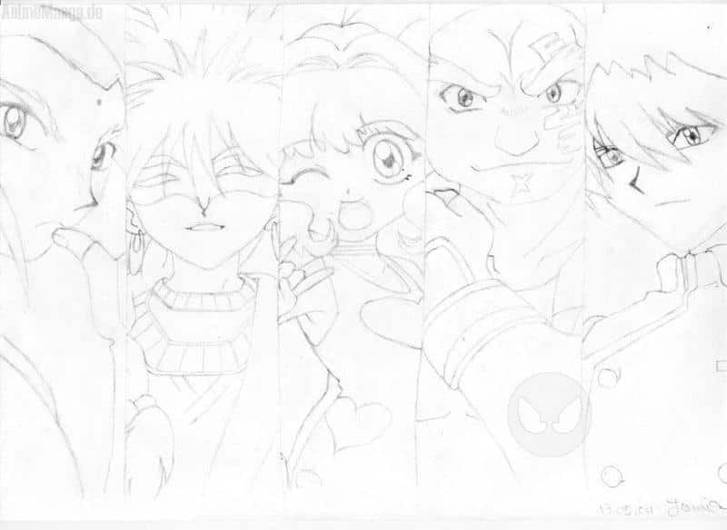 Naj, von links nach rechts: Garland (männlich), Mystel (männlich), Ming Ming (weiblich), Moses (männlich [abgedrehteste Version von Moses, die ich je gesehen habe... XDDD]), Brooklyn (männlich [MEIN Liebling..... ^________^])