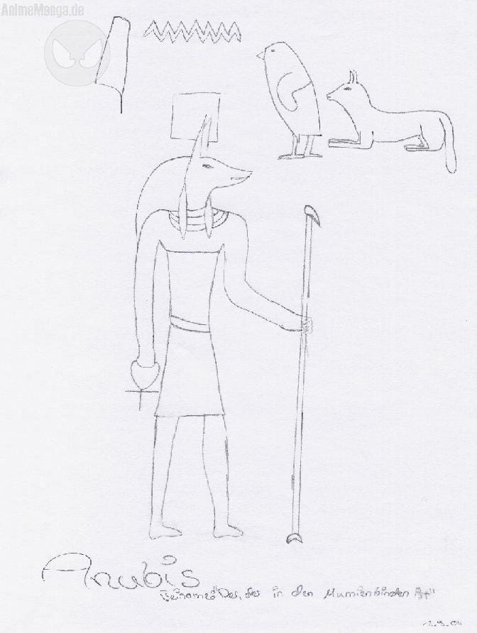 das ist Anubis, der Schakalgott. Drunter steht der Name und drüber in Hierroglyphen larader scanner war schon wieder scheiße