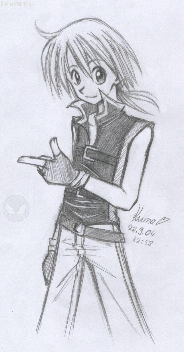 Also... das ist eine schnelle Bleistiftzeichnung. Ich wollte ausprobieren, ob ich die Gesichter nicht so eckig wie sonst hinkriege und ein paar Haarsträhnen mehr. Dabei kam dieser Namenlose Typ raus. Aber Koneko sagt, dass er zwar niedlich ist, jedoch nicht meinem Zeichenstil entspricht... Er soll auch einen Namen kriegen, weiß aber nich, welchen. Auf alle Fälle japanisch. *krampfhaftüberleg*