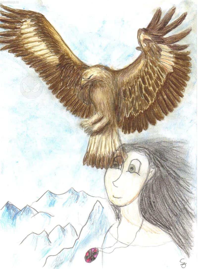 Dieses Bild hab ich mit Buntstiften und Pastellkreide gemalt. Das Gesicht ist nicht ganz so gut geworden,aber ich find,der Adler sieht doch gut aus. BITTE SCHREIBT MIR KOMMIS!!!!!!