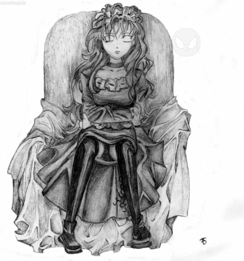 Hier ist eines meiner Bilder zu meinem Lieblingsmanga Angel Sanctuary. Es ist eine Bleistiftzechnung, die ich mit einer Bildvorlage gemalt habe. Erst beim scannen ist mir aufgefallen, das der Sessel "verformmt" ist, aber ich hoffe, dass es einigen von euch denoch gefällt.