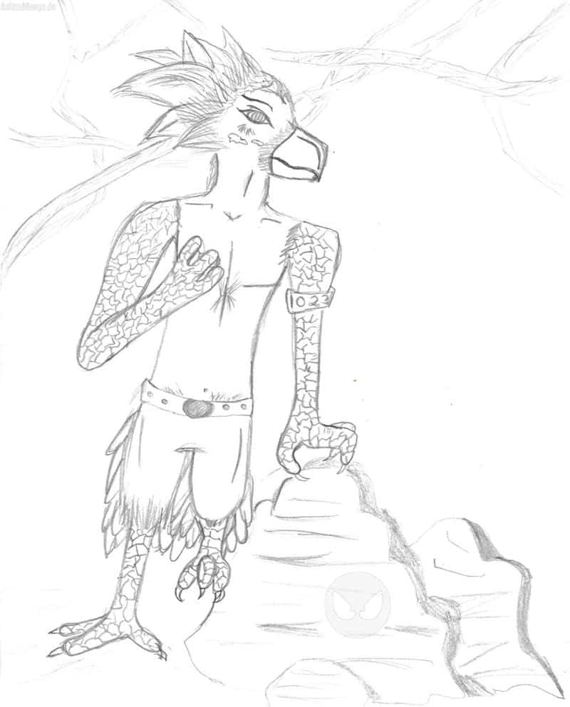 So die Arme , beine und der Schnabel sind von einem Adler . der Oberkörber vom menschen Und die Flecken im Gesicht sind auch von meinem Wellensittich!