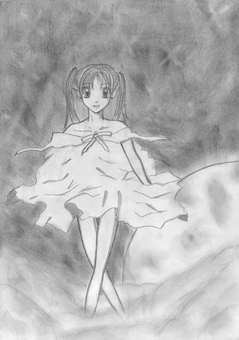 Das soll meine kleine Fee sein die ich halb zu Hause gezeichnet habe und halb in der Schule ^^