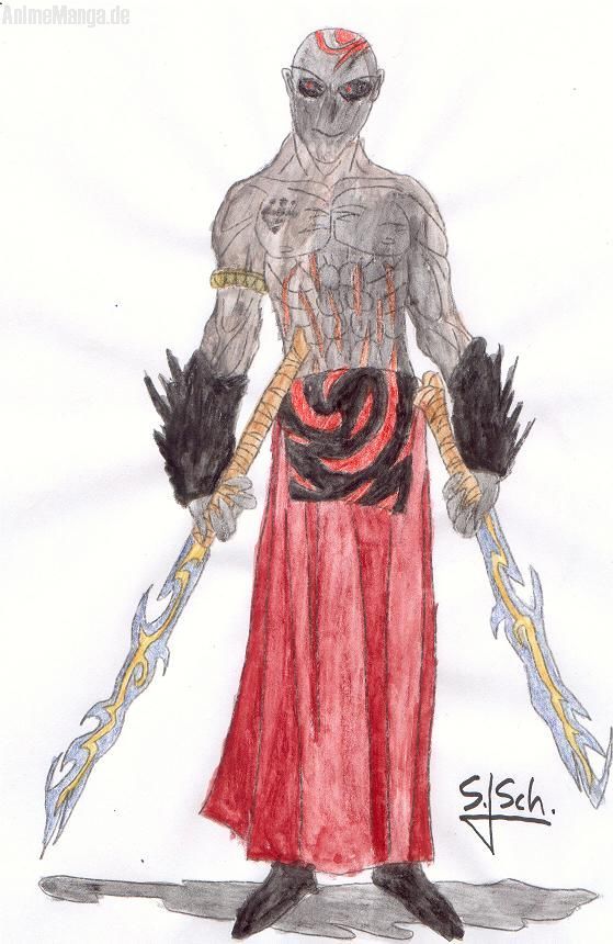 zuständig nur für geister oder andere Luftwesen, er tanzt ein Ritualen tanz mit sein klingen saugt somit die Geisterartiken Wesen in die Schwerter und sticht sie letz endlich selbst in den bauch.. somit sind die geisterwesen aller art vernichtet !