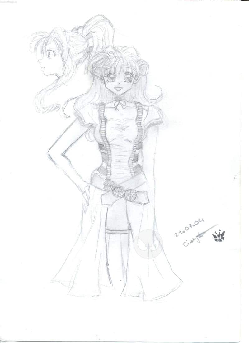 das bild habe ich gemalt, nachdem ich zum zichsten mal den 7. band von kkj gelesen hatte. ich fand marrons klamotten so schön. außerdem mag ich den aufbau total gerne.