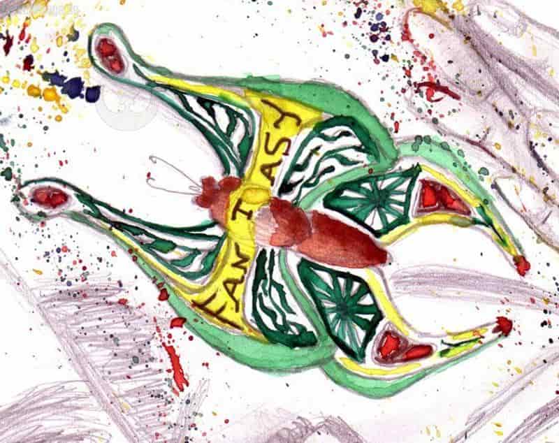 ebenfalls nur ein ausschnitt, der schmetterling ist in einem glas gefangen und wird von grauen kindern mit staunen betrachtet