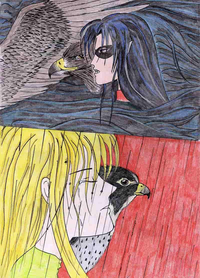 Herr und Meister ist Sajid Warlord, der Schwarzelb, dessen tierische Gestalt der elegante aber gefährliche Steinadler ist... sein Oberster Diener, Berater und bester Freund - den er Eluxiel (von lat.: 'jmd. ins Auge fallen') nennt - steht im Zeichen des Turmfalken...