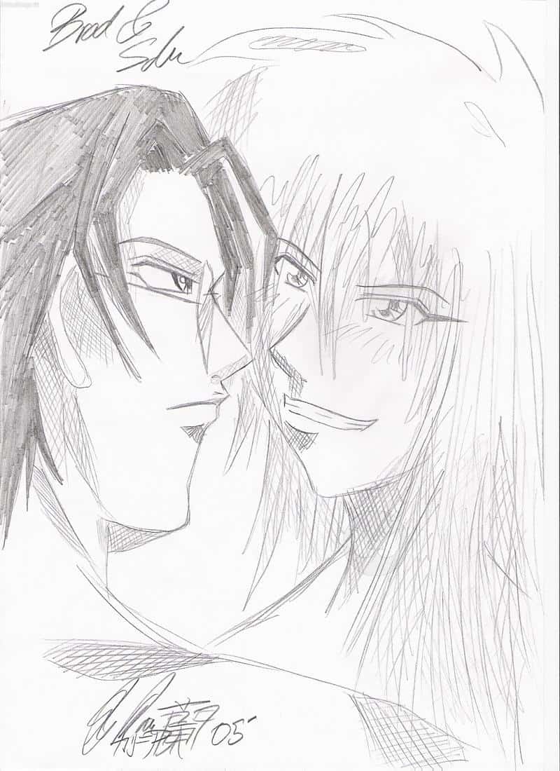 Nunja, das ist eine Skizze, die ich angefertigt habe, um mich ein bisschen auf meinen Doujinshi einzuzeichnen ^^°