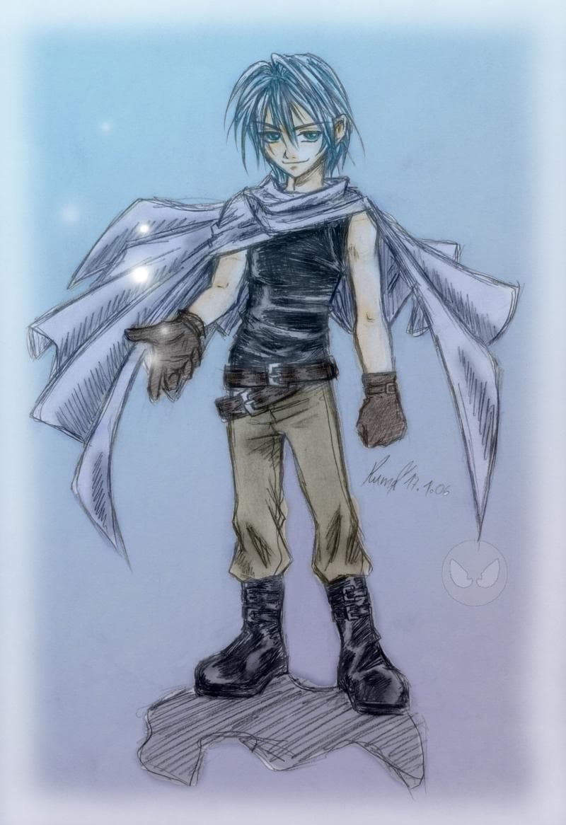 Und schon wieder ein neues Bild. Ich mag das Viech *_* Den Kerl habe ich letzten Freitag erfunden. Susichan hat ihm einen Namen gegeben: Kira ^-^ Danke für den Vorschlag. Sonst würde er jetzt immer noch "Typ" oder so heißen XDD *Susi knuff* Was habe ich dazu zu sagen...? Also erstmal fällt mir kein sonderlich schlimmer Fehler an den Proportionen auf. Ich mag das Pic^^ Damit es hübscher aussieht, habe ich ein wenig Farbe reingebracht. Aber sonst wüsste ich nicht, was ich noch sagen soll. Also lasse ich es bleiben. Bis zum nächsten Mal und... Bitte bitte, kritisiert mich T_T