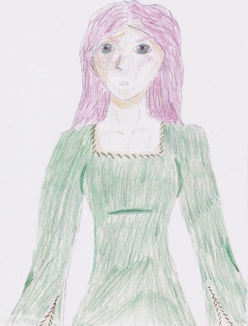 das soll so eine art festliches mittelalter-kleid sein. die farbe der haare ist eigentlichrot-braun aber mein scannerhat das wohl nicht ganz hinbeckommen. wieder kein hintergrund..