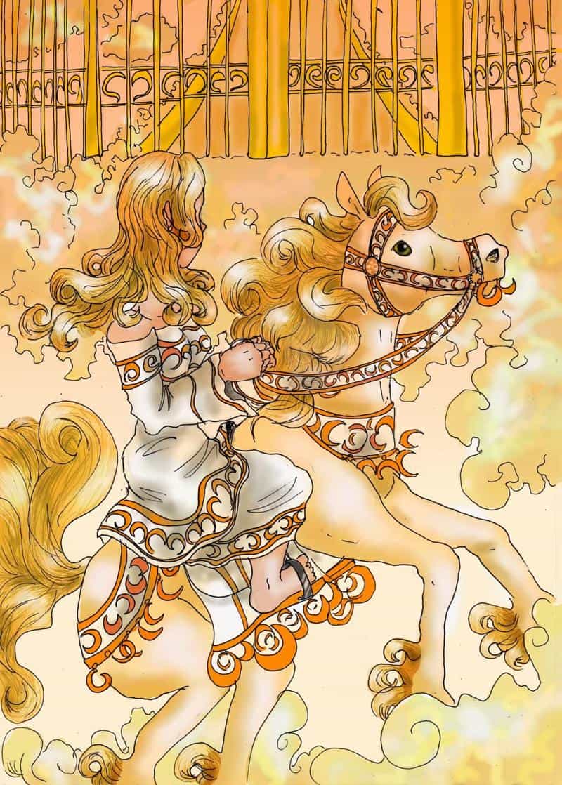 Das soll die griechische Göttin Sol sein (ich weiß, normalerweise ist Sol ein Mann, aber egal^^'), die in der Abendämmerung zurück auf den Olymp reitet. Da kann die Nacht doch beginnen, oder?
