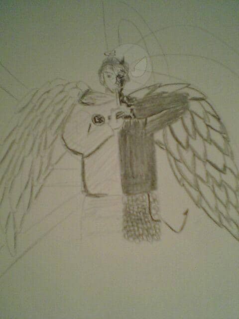 Halber Heiligenschein,halbe Teufelsfaust,1 Hocker(SG von Höcker),EIN ABZEICHEN VON DER BISMARKSCHULE(wie auf meinem Pulli^^)