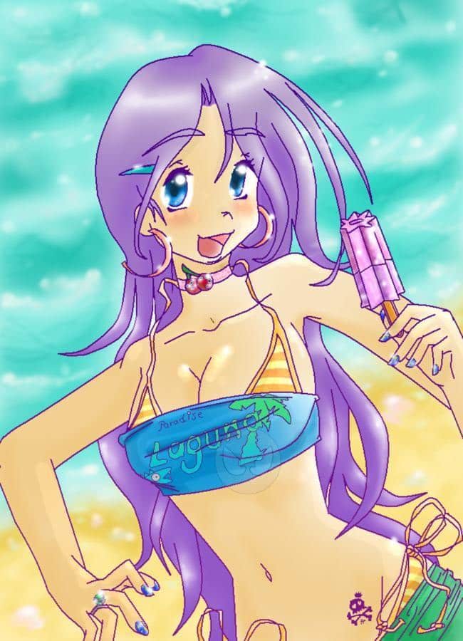 Ich hab zum ersten Mal mit farbigen Outlines rumexperimentiert un sogar einen Hintergrund hinzugefügt, wo ich sowas nun wirklich ÜBERHAUPT net kann XD (kleine Anmerkung: es soll Strand mit Wassa sein ^^")