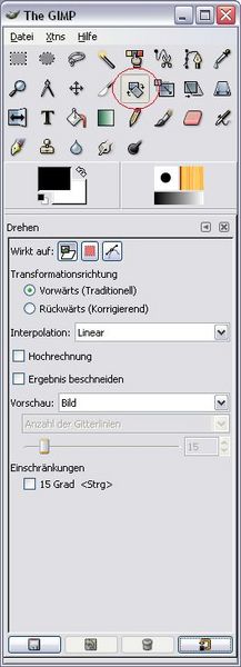 Keine Sorge, das passiert auch immer noch alten Hasen. Doch auch hierfür haben wir eine Lösung für Dich parat. Wie die meisten Grafikprogramm bietet auch „Gimp“ die Möglichkeit Fehlerhafte Scanns zu korriegieren. Hier nutzt Du in Deinem Werkzeugkasten das Tool „Drehen“ wie in