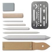 Problematisch bei diesem Verfahren ist jedoch die Tatsache, dass Kohle immer und überall haftet. Hast Du nur kurze Zeit Deinen Kohlestift in der Hand wird es Dir passieren, dass Deine Finger verschmiert sind. Daher empfiehlt sich beim Kohle-Zeichnen der Gebrauch mit einem Wischstift. Diese Stifte gibt es in den unterschiedlichsten Ausführungen und Grössen. Wie sich dieses optisch gestaltet soll in Abbildung 1 gezeigt werden.