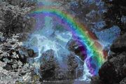 Zunächst musst Du ein Dokument Deiner Wahl öffnen. An dieser Stelle wurde als Hintergrund ein Wasserfall gewählt. Anschliessend wird ein Regenbogen eingefügt, der aufgrund seiner hohen Kontrastfähigkeit sehr gut zu erkennen ist.
