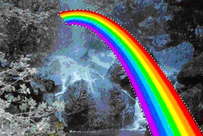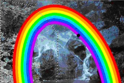 Tipp: Für alle Fans der Perspektive – damit es nicht danach aussieht, dass Dein Regenbogen „nach vorne aus Deinem Bild heraus fällt, bietet es sich an die vordere Felsformation im Originalbild zu markieren und anschliessend noch ein weiteres Mal über dem eigentlichen Regenbogen einzufügen.
