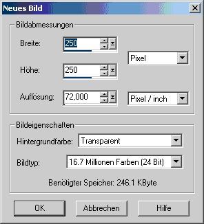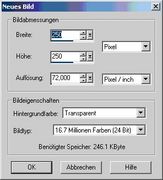 Die Farbtiefe Deines neuen Dokumentes sollte mindestens 16,7 Mio. Farben besitzen. Natürlich steht es Dir frei einen farbigen Hintergrund zu wählen, jedoch solltest Du Dir darüber im Klaren sein, dass Du mit Ebenen arbeitest und diese hier an vorderste Stelle stehen. Zudem gestaltet es sich als relativ simpel zu Beginn mit einem transparenten Hintergrund zu arbeiten, da Du Dich erst einmal an dem Karo-Muster orientieren kannst.