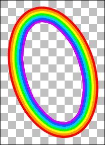 An dieser Stelle öffnest Du ein weiteres Dokument. Als Beispielobjekt wurde nun ein Regenbogen gewählt. Die eigentliche Vordergrundfarbe wurde deaktiviert, die Hintergrundfarbe hingegen ist aktiv. Um den Regenbogen zu erstellen klicke zunächst auf die Farbe „Rot“ für den äussersten Ring Deines Regenbogens.