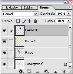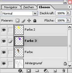 Bei der Farbe 3 (Blau) handelt es sich also um die oberste Ebene. Darunter liegt nun mit der Farbe 2 (Gelb). Nun ist es ein Einfaches die Farbe Blau unter die Ebene der Farbe 2 „Gelb“ zu ziehen.