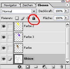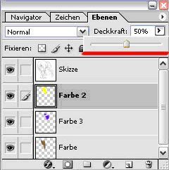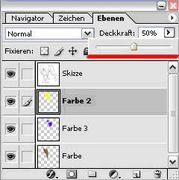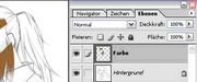 Um diesen Effekt zu vermeiden, erstellst Du als erstes eine neue Ebene. Auf eben dieser Ebene kannst Du nun die eigentlichen Farben auftragen. Stell Dir diese Ebene einfach als eine Art transparente Folie vor, auf der Du nach Lust und Laune zeichnen kannst. Falls Du dann doch noch mal einen Fehler gemacht haben solltest, kannst Du Deine Koloration einfach wieder von Deiner Folie löschen, ohne dabei Deine ursprüngliche Zeichnung zu zerstören.